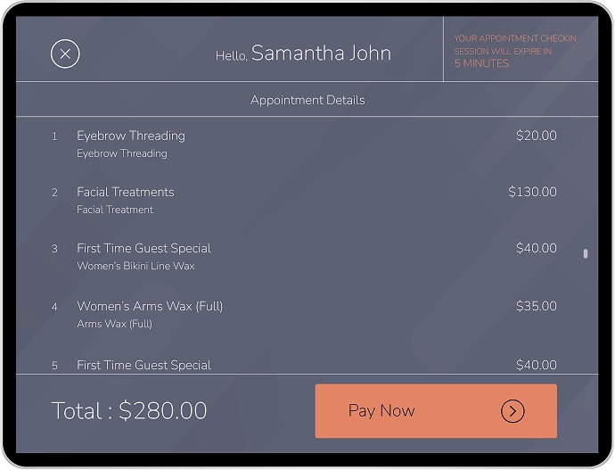 We introduced a self-check-in kiosk connected directly to the user booking site. When a customer arrives, they simply enter the phone number they used during online booking. This way, they instantly access their appointment details and make secure payments on the spot with a tap of their card using NFC technology.
