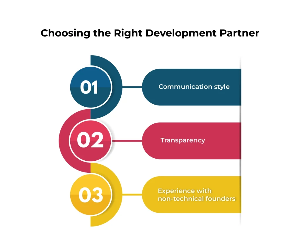 Look for transparency around timelines, costs, and risks. Especially when unexpected issues arise. Experience working with non-technical founders is critical for long-term success.