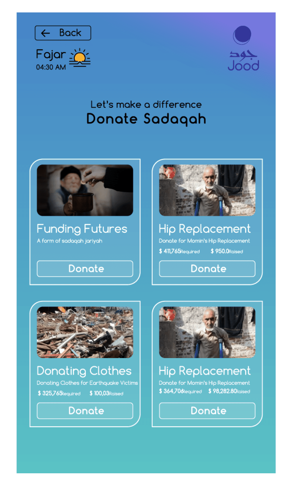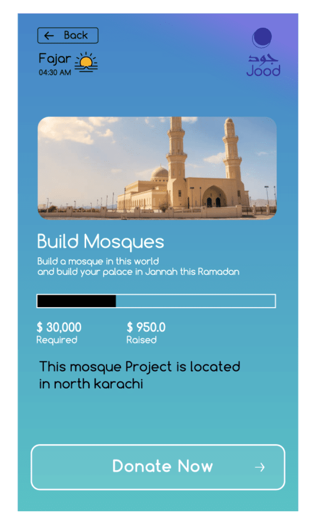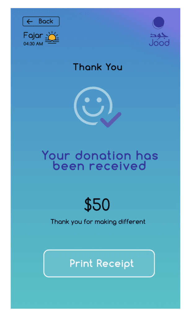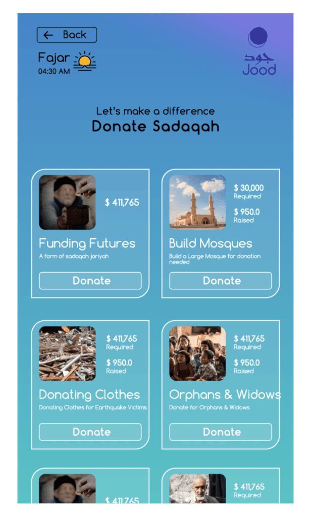 We developed Jood as a fully bilingual platform, supporting both Arabic and English interfaces. This eliminated accessibility issues and made giving charity online simple for all users. The intuitive design also lets donors choose from various charitable categories like Zakat, Sadaqah, mosque construction, and more, creating a seamless and personalized giving experience.