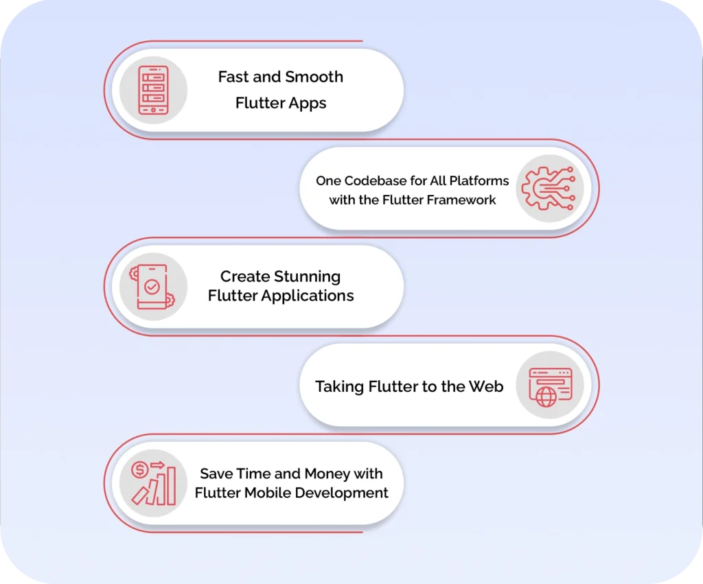Using Flutter’s single code ideology, fast hot reload, native-like performance due to Dart and Skia, and beautiful design options, developers can create top-quality apps that work well and look great.